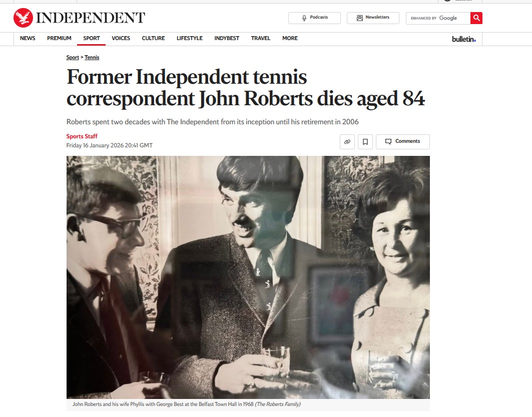 John Roberts, who has died aged 84, enjoyed a long and illustrious career in sports journalism, starting at the Stockport Express; here, SJA member and former Independent sports editor Paul Newman – who succeeded John as the Indy’s tennis correspondent – reflects on his life and achievements…